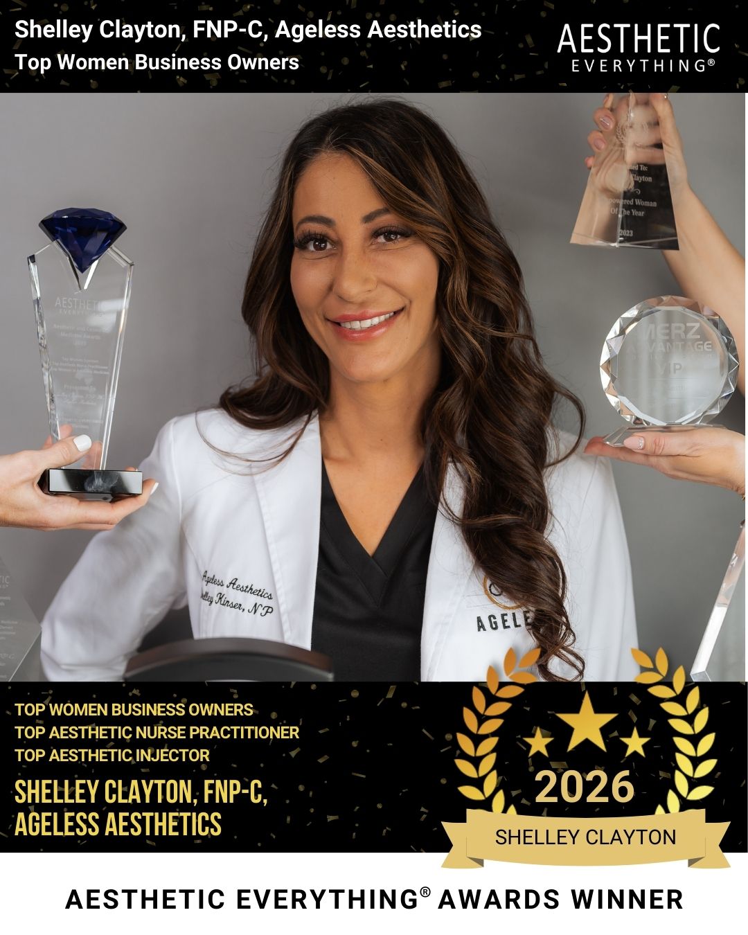 The 2026 Aesthetic Everything® Aesthetic Medicine Awards are among the most anticipated events in the aesthetic industry, recognizing professionals who have demonstrated leadership, expertise, and innovation in their field. Ageless Aesthetics’ multiple wins this year reflect their unwavering commitment to excellence and their continued growth as a premier destination for aesthetic services.